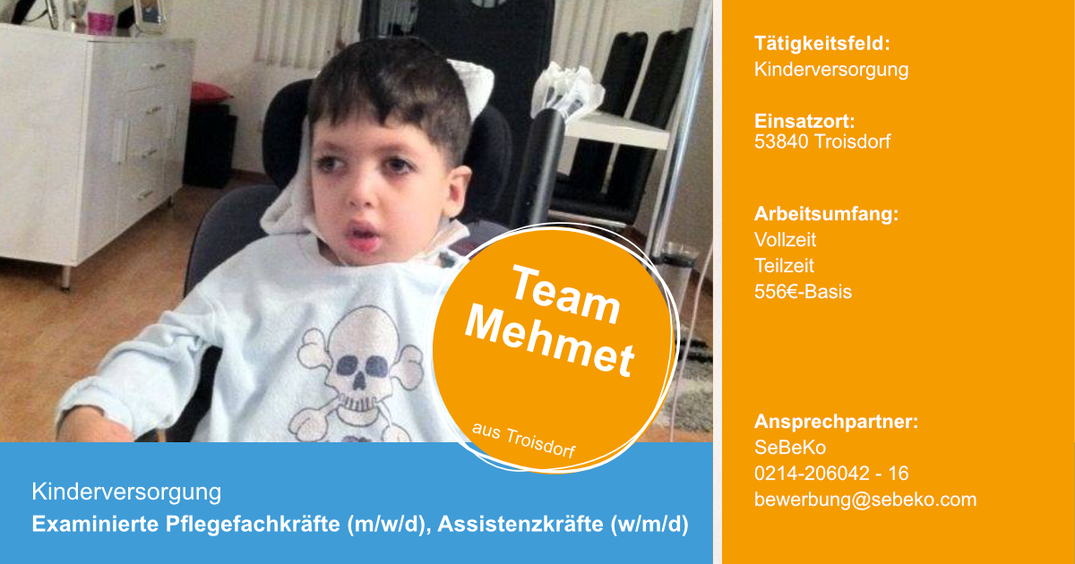 Wenn du weitere Fragen hast, scheue dich nicht unter der angegebenen Rufnummer bei SeBeKo anzurufen (0214/206042-12) oder eine E-Mail zu schreiben mit dem Betreff „Team_Mehmet“ an bewerbung@sebeko.com.